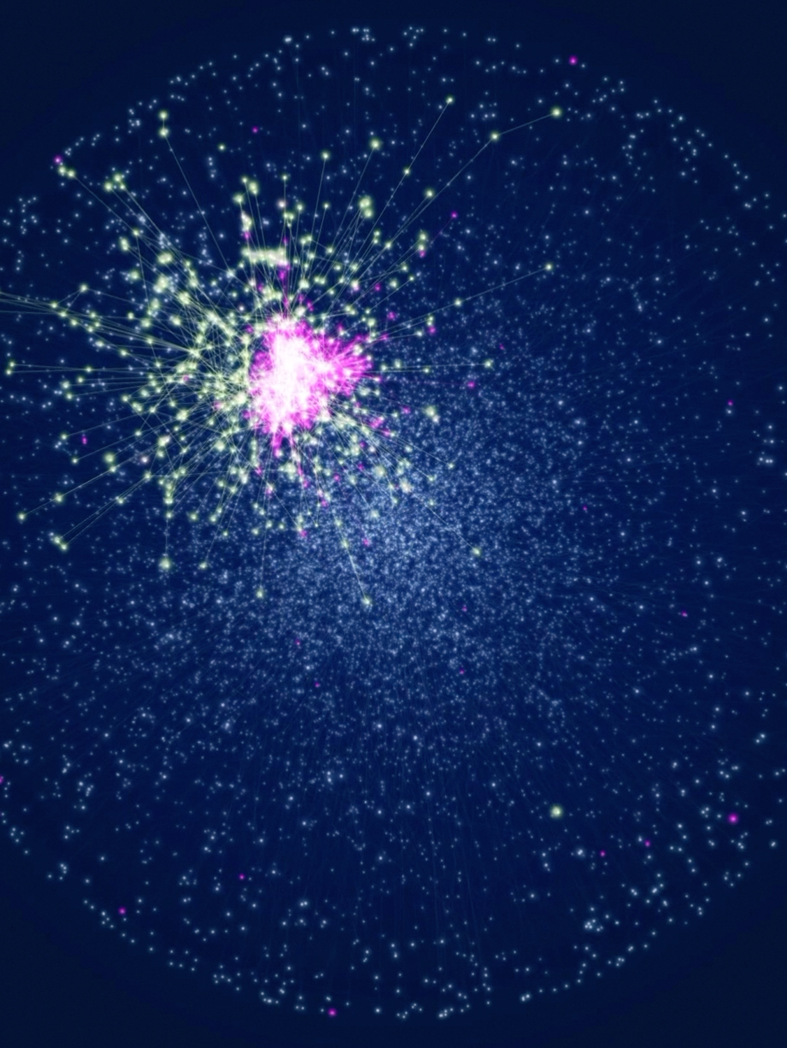 To see how the network map relates to disease, we start with Asthma, the most common chronic respiratory disease, affecting 17 million U.S. children and adults. During the last decades, geneticists and biologists have identified the genes associated with Asthma. The purple nodes represent asthma genes on the network map. We expect them to be together, forming a compact asthma module. In reality, they are scattered all over the map, disconnected. But we are not only missing links; we are also missing many asthma genes. Network science helps us identify candidate disease genes, those that could hold the module together.