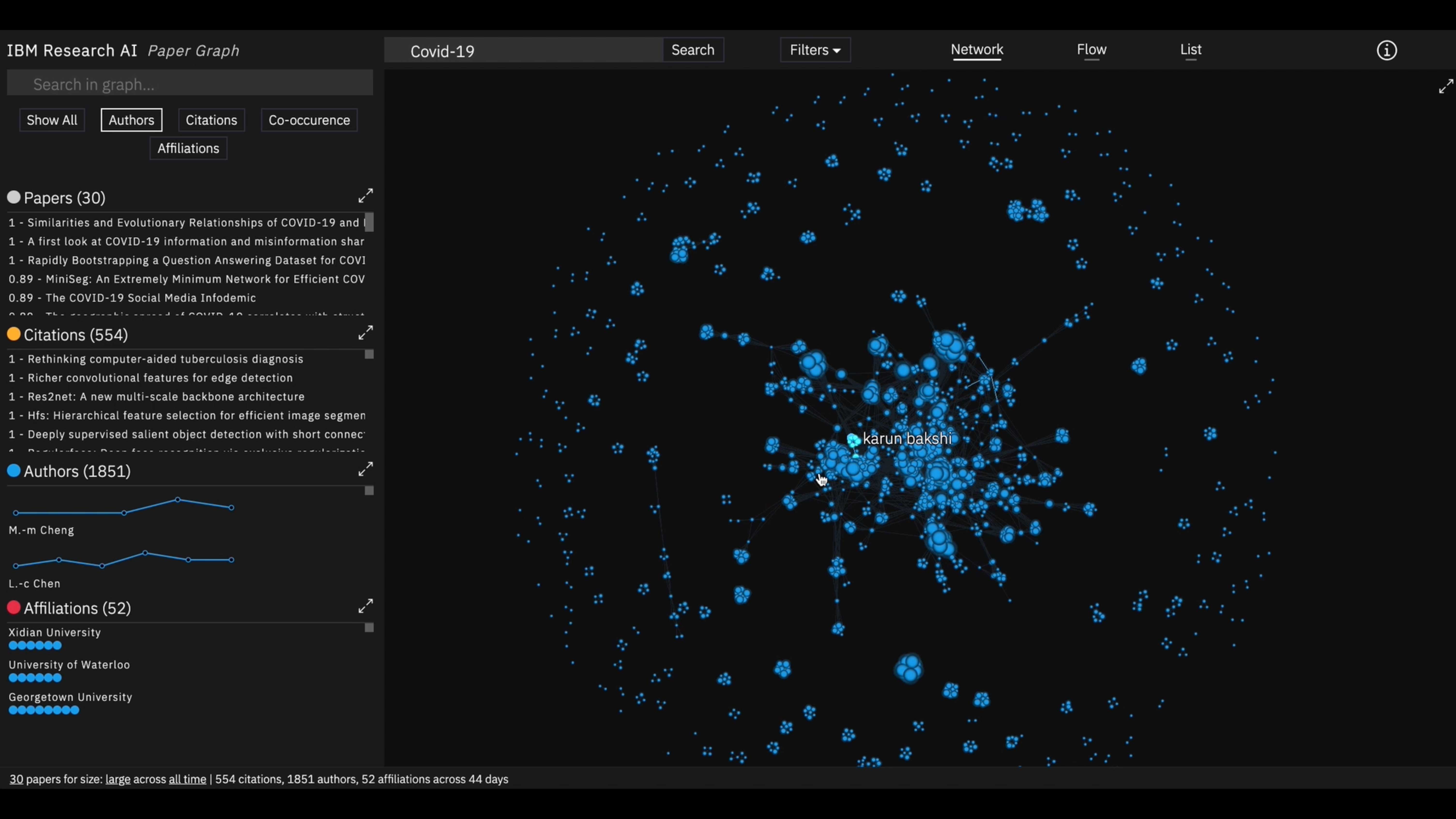 Paper Graph is an interactive visualization tool designed to help researchers navigate and understand the complex landscape of academic literature. The system queries the Arxiv database and transforms research papers into an explorable network graph, revealing hidden connections between papers, authors, and institutions.